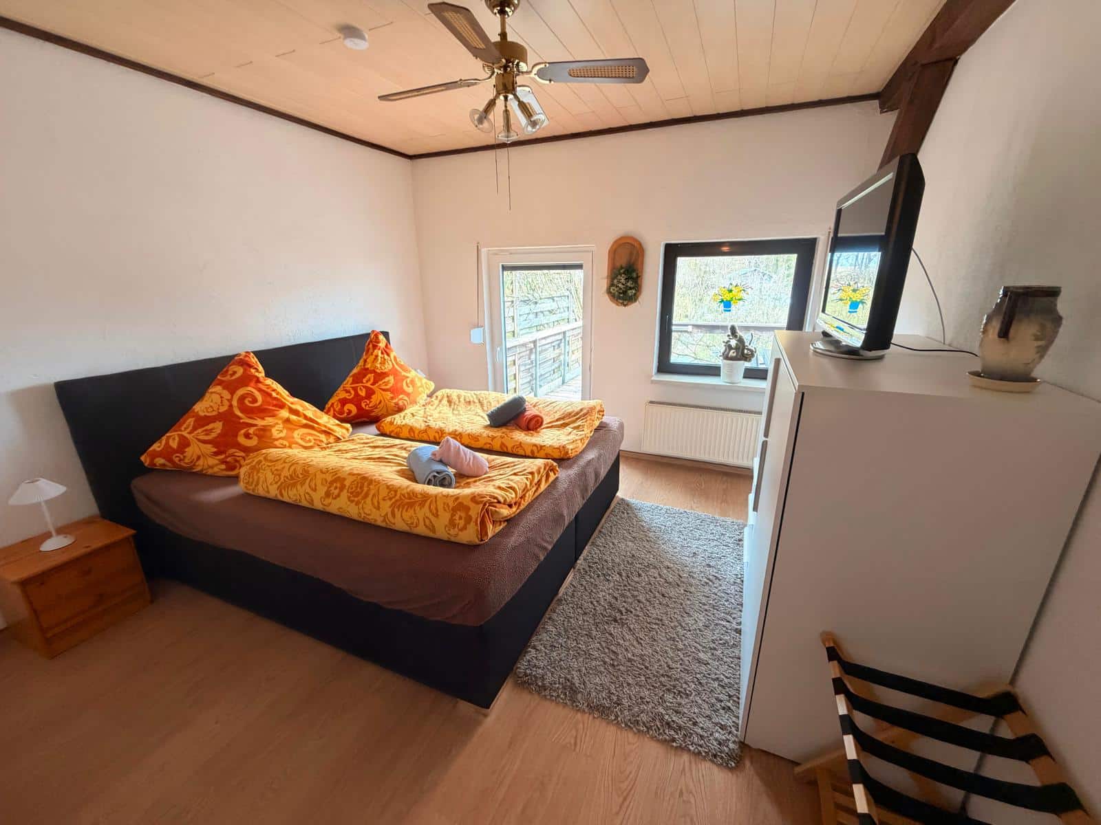 - Schlafzimmer mit Boxspringbett + Zustellmöglichkeit (Beistell-/Kinderbett bis 110cm)