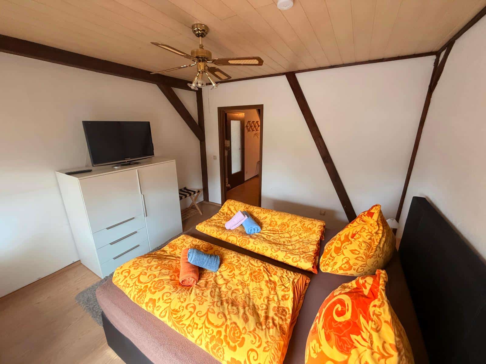 - Ferienwohnung im 1. OG des Anbaus (nicht barrierefrei, Zugang über schmale Treppe)